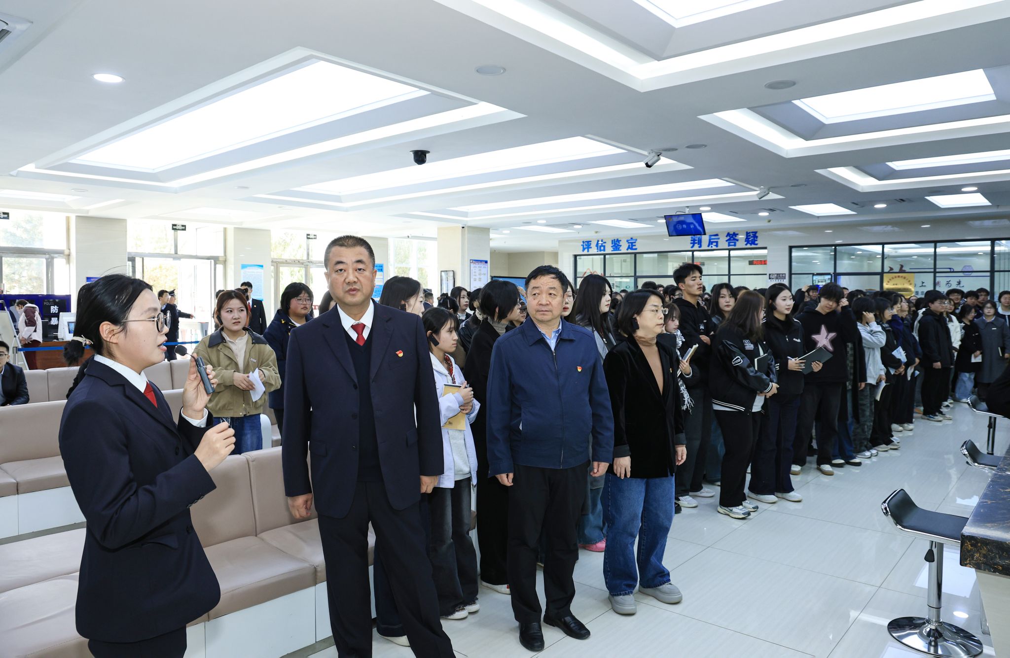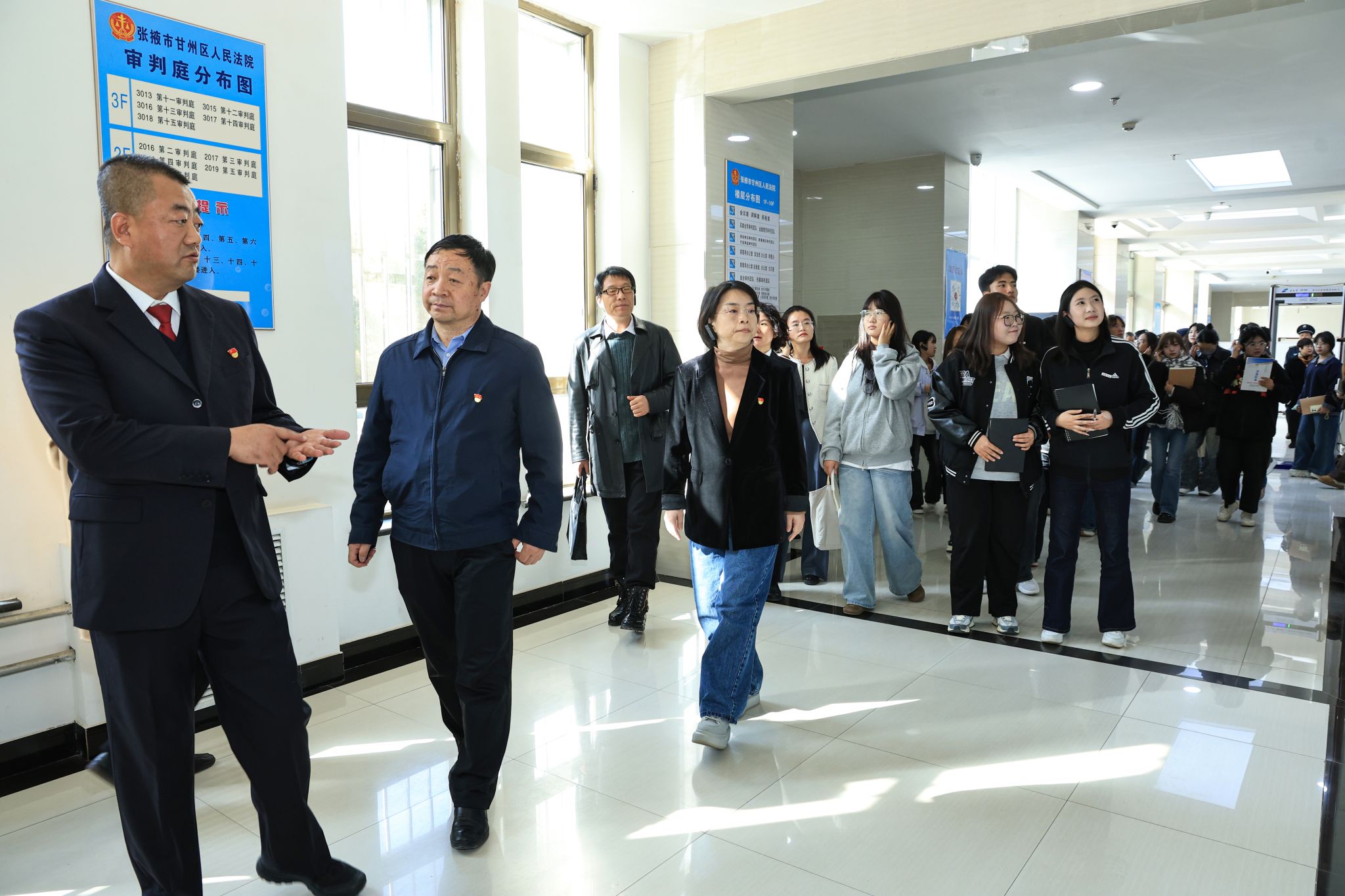 师生们在法院干警的引导下实地参观了甘州区人民法院诉讼服务中心、审判庭、执行指挥中心及党建文化长廊等。通过了解“一站式”诉讼服务流程、智慧法院建设成果及党建工作成效,学生们“零距离”感受司法为民的温度与科技赋能的效率,干警们严谨的职业素养和对法治信仰的坚守令在场师生深受触动。