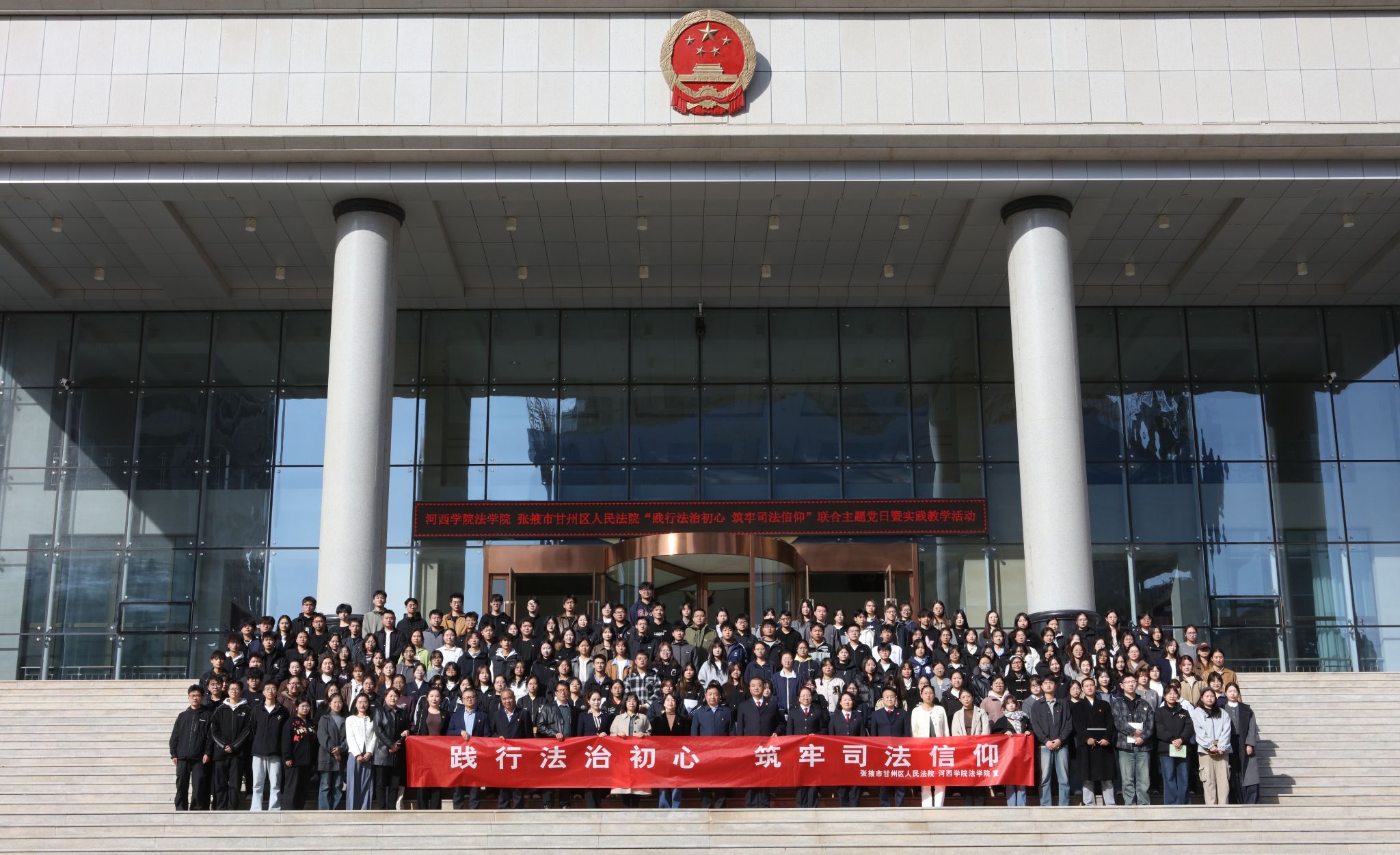 为深入学习贯彻习近平法治思想,强化法学教育与司法实务的深度融合,10月30日,法学院与甘州区人民法院联合开展“践行法治初心,筑牢司法信仰”主题党日暨实践教学活动。甘州区人民法院干警代表和法学院师生代表共计二百余人参加。
